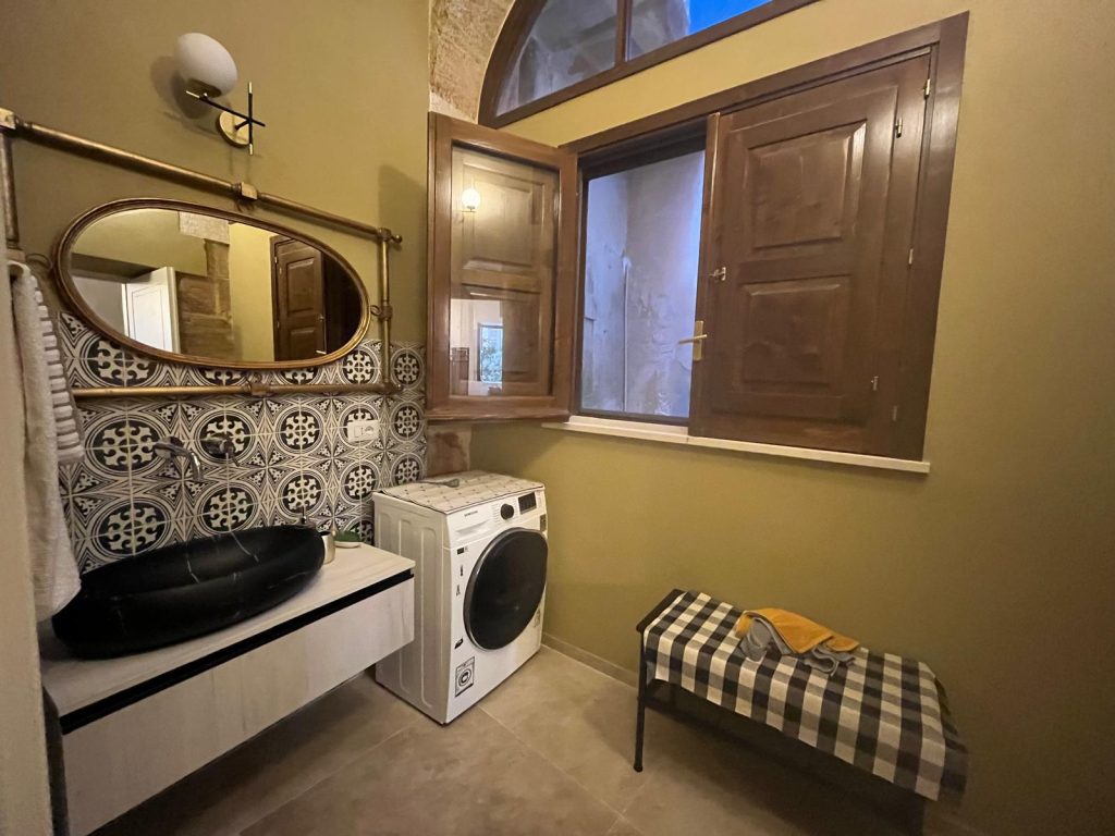 suddiviso in due monolocali giá pronti all’utilizzo di 40 mq ciascuno circa, con il proprio bagno.